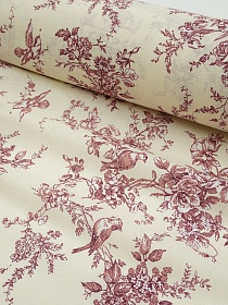 Полулен "Райские птицы" цв.вишневый, СОРТ2, ш.2.2м, лен-30%, хлопок-70%, 140гр/м.кв