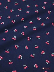 Импорт. хлопок "Маленькие спелые вишенки на чернильно-синем", ш.1.45м, хлопок-100%,100гр/м.кв
