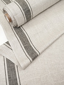 Льняной жаккард "Черная полоска" цв.натуральный, ш.1.5м, лен-100%, 170гр/м.кв