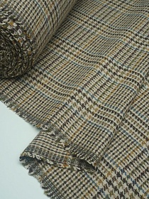 Шерсть пальтово-костюмная Твид "Гусиная лапка-клетка" цв.коричневый, ш.1.5м, шерсть-50%, п/э-50%