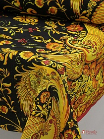 10616 товаровМерный лоскут (ткань в отрезах) Рогожка "Жар - птица на черном", ш.1.5м, хлопок-100%, 165гр/м.кв