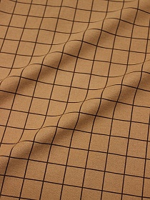 Шерсть пальтово-костюмная Твид "Клетка бежево-горчичная на коричневом", ш.1.5м, шерсть-50%, п/э-50%