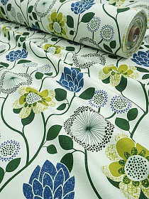 Интерьерный хлопок "Марьин сад" цв.оливковый/синий, ш.1.5м, хлопок-100%, 250гр/м.кв