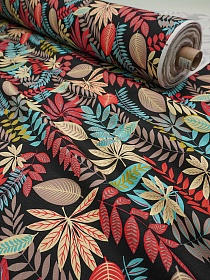 Интерьерный хлопок "Хоровод листьев на черном", ш.1.5м, хлопок-100%, 250гр/м.кв