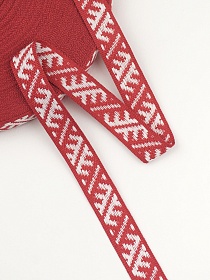 Лента тканая для поясов, 35мм Белый орнамент на красном