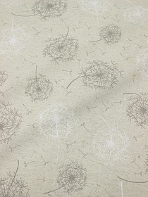 Полулен "Серо-белые одуванчики" (на суровом), ш.1.5м, хлопок-70%, лен-30%, 140гр/м.кв