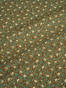 Теплый хлопок "Веточки-цветочки на оливково-коричневом", ш.1.4м, хлопок-100%, 150гр/м.кв