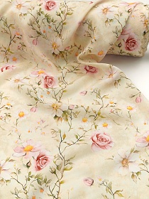 Штапель Премиум "Облачный розарий" цв.сливочно-оливковый, ш.1.45м, вискоза-100%, 110гр/м.кв