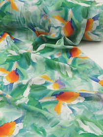 Штапель "Акварельные ирисы" цв.зеленый, ш.1.45м, вискоза-100%, 100гр/м.кв
