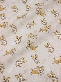 Ситец детский "Озорные корги", СОРТ2, ш.0.95м, хлопок-100%, 96гр/м.кв