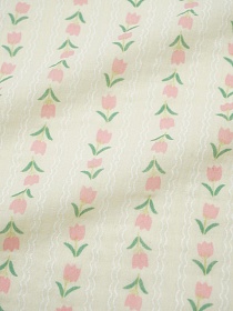 Муслин двухслойный с эф.жатости "Тюльпанчики - тесьма" цв.сливочный, ш.1.35м, хл-100%, 120гр/м.кв