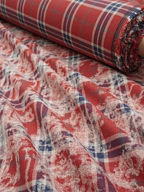 Фуле с вареным эффектом "Клетка" цв.красно-кирпичный, ш.1.45м, хлопок-100%, 180гр/м.кв