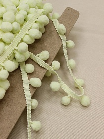10895 товаровТесьма "Помпоны" цв.бледно-лимонный с зеленым оттенком, шир.тесьмы без помпона-10мм; помпон Ø-15мм