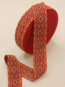 Лента тканая для поясов, 50мм Желто-черный орнамент на красном