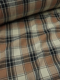 Фуле "Клетка" цв.карамельно-коричневый/бежевый/черный, ш.1.45м, хлопок-95%, п/э-5%, 150гр/м.кв