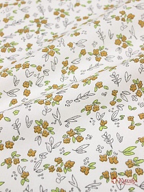 Штапель "Желтые лютики на белом", ш.1.45м, вискоза-100%, 100гр/м.кв