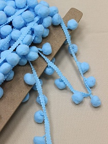 10973 товаровТесьма "Помпоны" цв.лазурно-голубой, шир.тесьмы без помпона-8мм; помпон Ø-18мм, п/э-100%