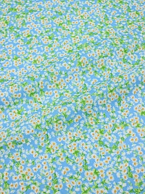 Перкаль "Ромашка луговая" цв.лазурно-голубой, ш.1.5м, хлопок-100%, 105гр/м.кв