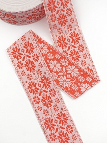 Жак.лента 70мм Алый славянский орнамент на св.розовом