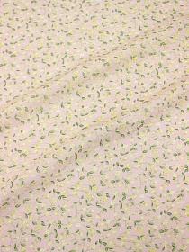 Муслин двухсл. с эф.жатости "Ароматные букетики с горошком" цв.св.телесно-желтый, ВИД2, ш.1.4м