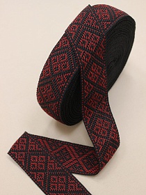 Лента тканая для поясов, 50мм Красные ромбы на черном