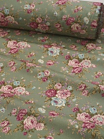 Сатин "Цветочное послание" цв.т.морозно-зеленый, ш.1.6м, хлопок-100%, 110гр/м.кв