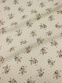 Муслин двухсл. с эф.жатости "Ароматные букетики с горошком" цв.св.телесно-желтый, ВИД2, ш.1.4м