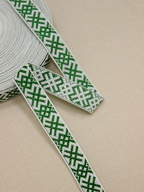 Жак.лента 17мм Зеленый оберег на белом, рис.9669/2