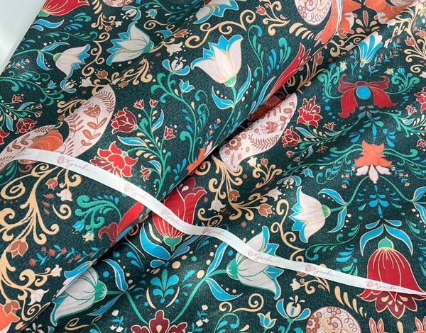 Сатин "Великолепие роз на винтажно-зеленом", ш.1.6м, хлопок-100%, 110гр/м.кв