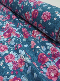 Импорт. хлопок "Фантазийные цветы" цв.синий, ш.1.48м, хлопок-100%, 90гр/м.кв