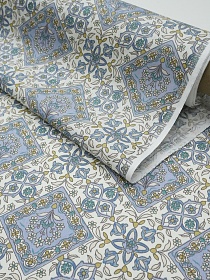 Сатин "Летний витраж - узор" цв.сине-голубой, (комп), ш.1.6м, хлопок-100%, 110гр/м.кв