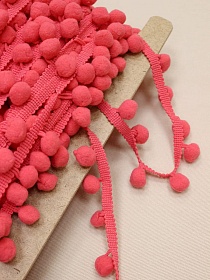 10992 товаровТесьма "Помпоны" цв.насыщенный коралл, шир.тесьмы без помпона-10мм; помпон Ø-16мм, п/э-100%