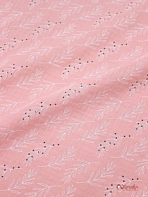 Муслин двухслойный с эф.жатости "Веточки" цв.св.кораллово-розовый, ш.1.42м, хлопок-100%, 120гр/м.кв
