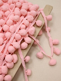 Тесьма "Помпоны" цв.св.розово-коралловый, шир.тесьмы без помпона-10мм; помпон Ø-20мм, п/э-100%
