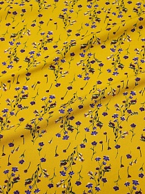 Штапель Премиум "Цветочный ветерок" цв.горчично-желтый, ш.1.4м, вискоза-100%, 120гр/м.кв
