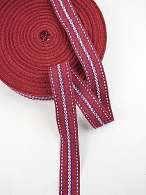 Лента тканая для поясов, 25мм Сине-белая строчка на красном