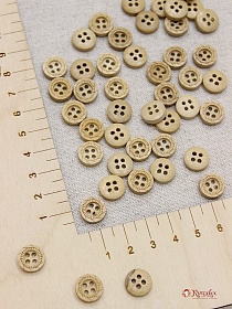 Пуговица дерево, светлый орех, 10мм, 4 отверстия