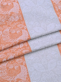 Холст полотенечный жаккард "Птицы" цв.оранжевый/серый, ш.0.5м, лен-30%, хлопок-70%, 210гр/м.кв