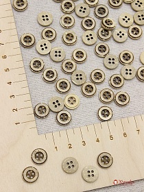 Пуговица светлый кокос, с темным ободком по кругу,11мм, 4 отверстия