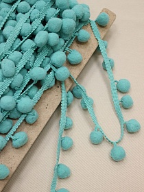 10466 товаровТесьма "Помпоны" цв.мятно-бирюзовый, шир.тесьмы без помпона-10мм; помпон Ø-20мм, п/э-100%