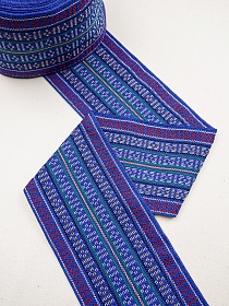 11070 товаровЛента тканая для поясов (кушак), 120мм Цветные дорожки на васильковом
