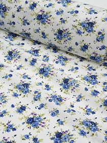 Импорт. хлопок "Синие букеты роз на белом", ш.1.47м, хлопок-100%, 100гр/м.кв