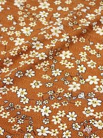 Штапель "Белые цветочки на пшене" цв.коричнево-терракотовый, ш.1.41м, вискоза-100%, 90гр/м.кв