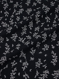 Штапель "Маленькие белые цветочки на черном", ш.1.44м, вискоза-100%, 90гр/м.кв