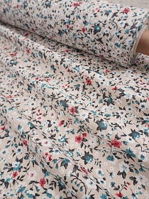 Полулен "Цветочный луг" цв.морская волна, ш.1.5м, лен-30%, хлопок-70%, 140гр/м.кв