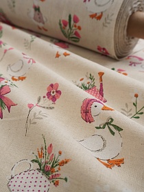 Полулен "Гуси - прованс" (на суровом) цв.розовый, ш.1.5м, лен-30%, хлопок-70%, 140гр/м.кв