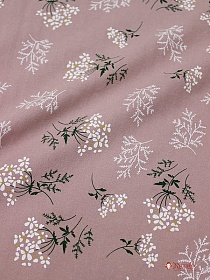 Плательный хлопок "Веточки ромашки на лилово-розовом", ш.1.43м, хлопок-100%, 125гр/м.кв