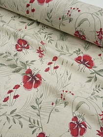 Полулен "Солнышки под набойку" цв.красно-терракотовый, ш.1.5м, лен-30%, хлопок-70%, 147гр/м.кв