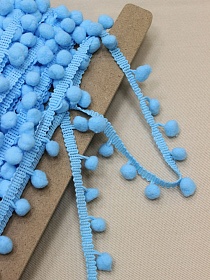 10854 товаровТесьма "Помпоны" цв.лазурно-голубой, шир.тесьмы без помпона-8мм; помпон Ø-11мм, п/э-100%