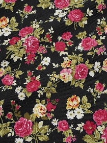 Микровельвет "Розово-желтые букеты роз на черном", СОРТ2, ш.1.1м, хлопок-100%, 125гр/м.кв